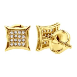 Real Black Diamond Stud Earrings Sterling Silver Square Kites 0.1ct