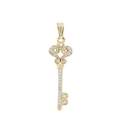 Small 14K White Gold Round Diamond Key Pendant For Women 0.25ct