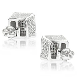 Sparkling Round Diamond Cluster Earrings Studs For Men & Women 14K White Gold