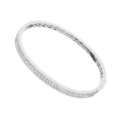 14K White Gold Thin Diamond Bangle Bracelet For Women 2.5 Carat