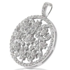 14K White Gold Diamond Circle Pendant For Women By Luxurman 0.33ct