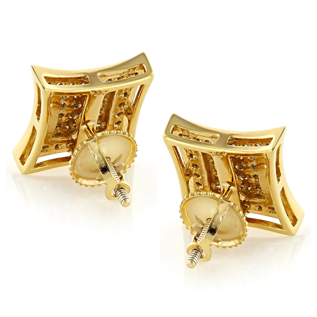 These Yellow Gold Plated Sterling Silver Diamond Earrings showcase 0.25 carats of genuine diamonds and a luxurious yellow gold plating for a yellow gold look. Featuring a versatile design these diamond earrings are an affordable alternative to gold jewelry.